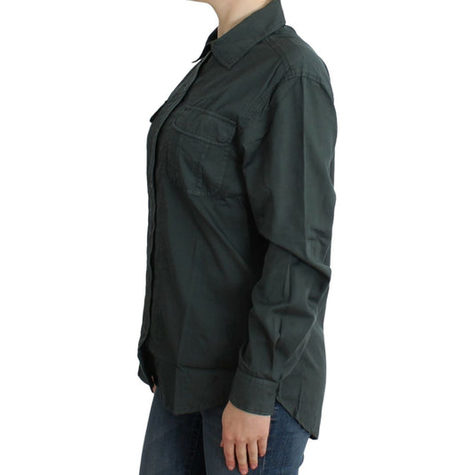 قميص كافالي الأنيق المصنوع من القطن باللون الرمادي بأزرار