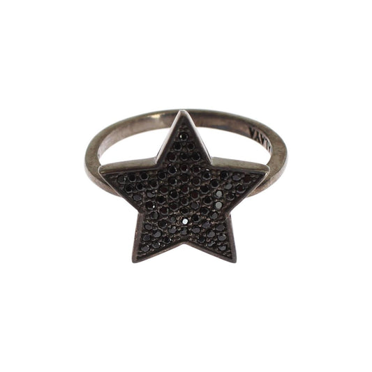خاتم نيالايا الأنيق المصنوع من الفضة الإسترلينية والمرصّع بالكريستال الأسود