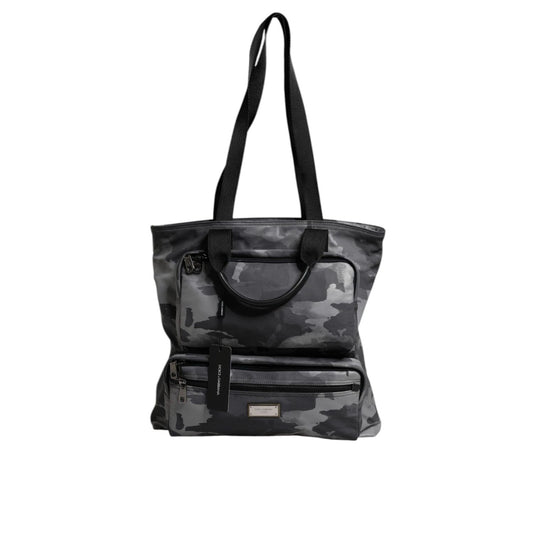 Dolce & Gabbana Gray Camo Cotton Multiple Compartments Tote Bag