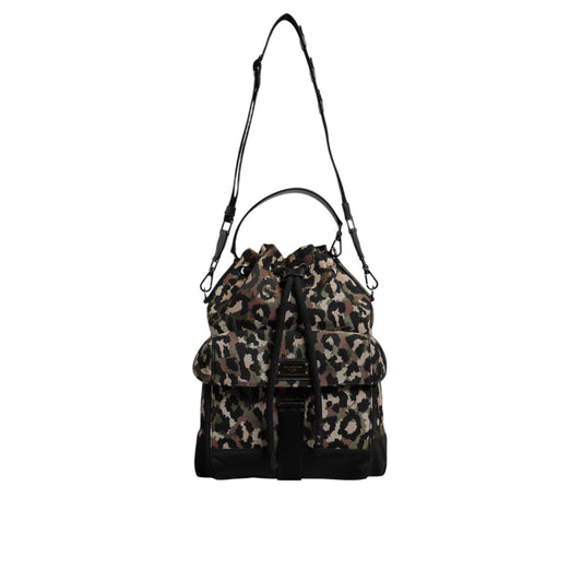 Dolce & Gabbana Multicolor Leopard Cotton Shoulder Bucket Bag