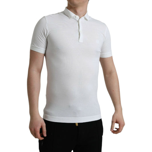 تي شيرت دولتشي آند غابانا الأنيق المصنوع من القطن باللون الأبيض بياقة دائرية
