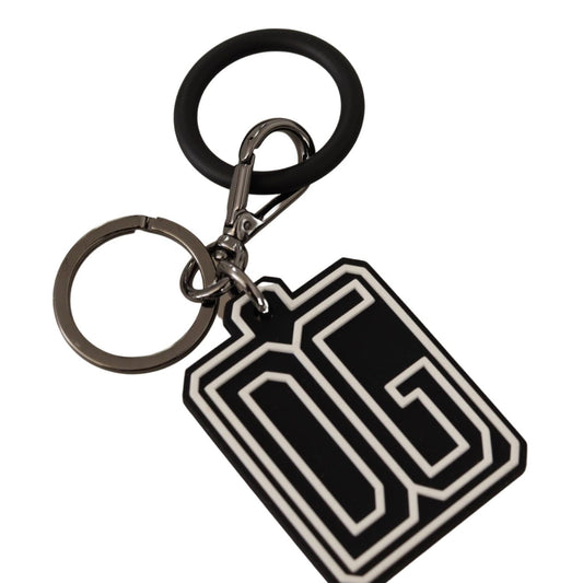 Dolce & Gabbana Black White DG Rubber Logo Silver Ring Keychain