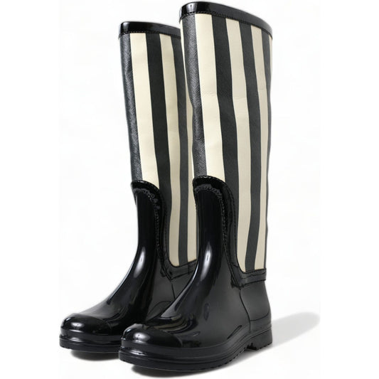 حذاء طويل حتى الركبة مخطط باللونين الأبيض والأسود من دولتشي آند غاباناVendor:Dolce & GabbanaRegular price £499.00 GBPRegular price Sale price £499.00 GBPUnit price / perSale