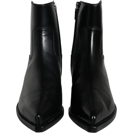 حذاء بوت قصير من الجلد الأسود من دولتشي آند غابانا