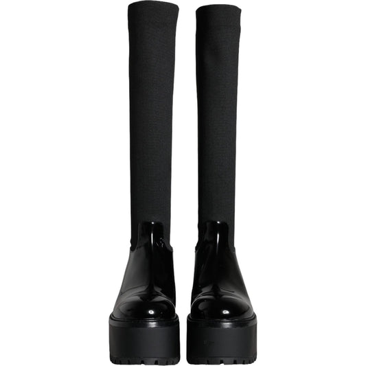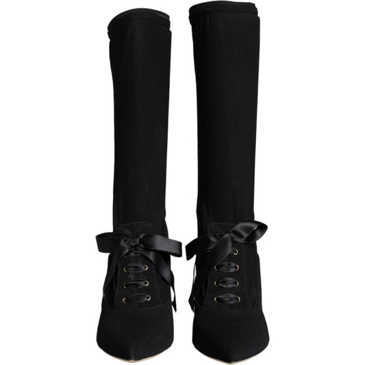 حذاء دولتشي آند غابانا أسود بكعب ستيليتو يصل إلى منتصف الساق