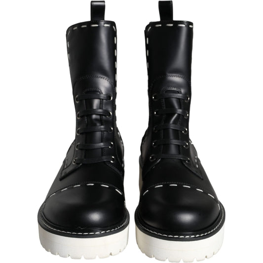 حذاء Dolce & Gabbana أسود من الجلد القتالي بارتفاع متوسط