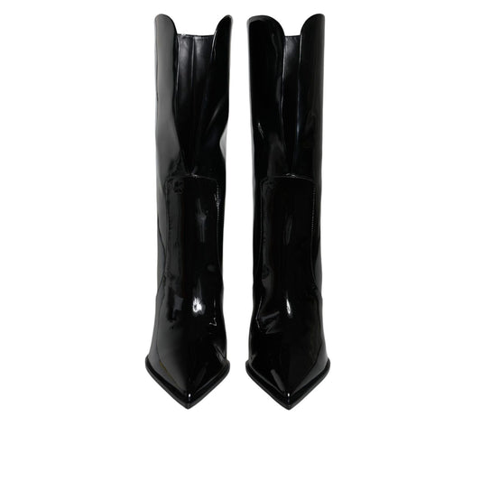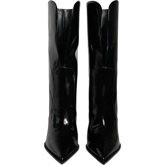 حذاء دولتشي آند غابانا من الجلد اللامع الأسود بطول منتصف الساق