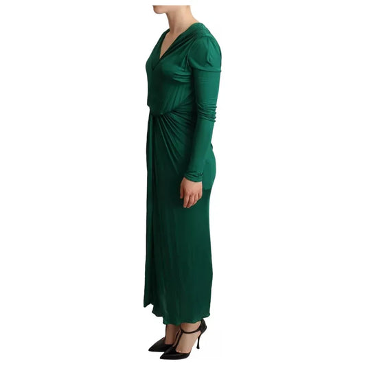 فستان دولتشي آند غابانا متوسط الطول بأكمام طويلة من الفيسكوز باللون الأخضر الداكن