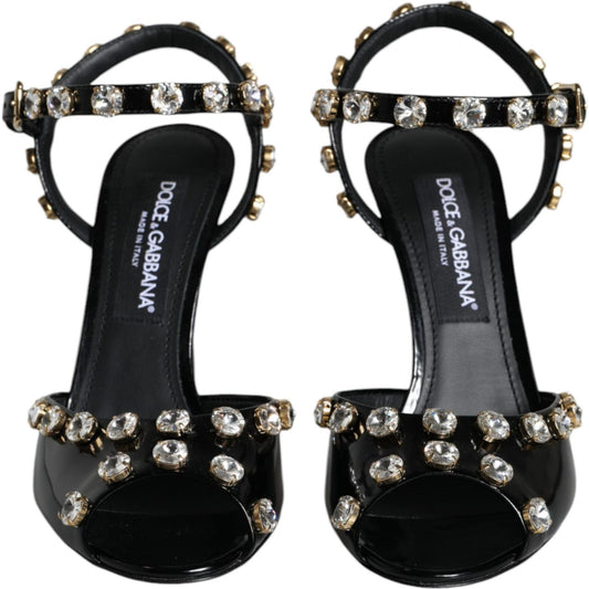 Dolce & Gabbana Black Leather Crystal Bow Heels Sandals Shoes