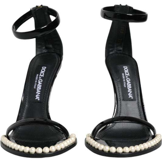 Dolce & Gabbana Black Keira Leather Faux Pearl Sandals Heels Shoes
