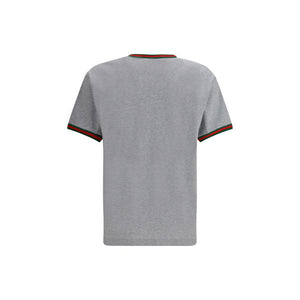 Light grey melange cotton T-shirt with Gucci embroidery on the chest and contrasting Web details.