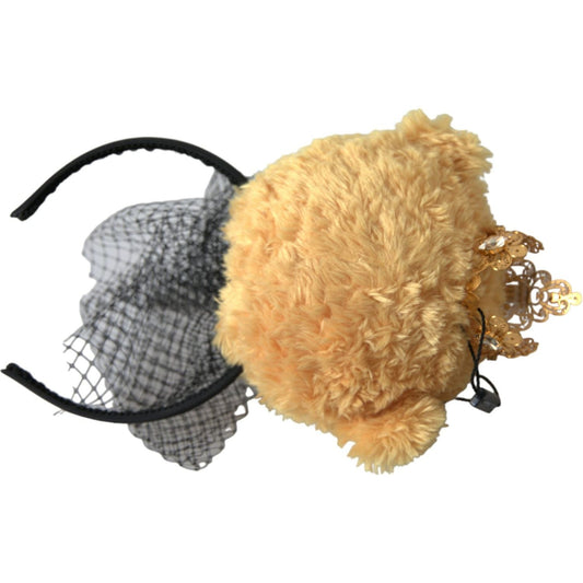 Dolce & Gabbana Brown Teddy Bear Gold Crystal Crown Hair Band Diadem