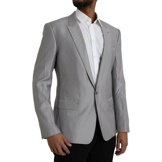 Dolce & Gabbana Gray Wool Peak Single Breasted Coat Blazer