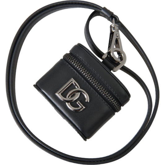 Dolce & Gabbana Black DG Logo Leather Silver Metal Airpods Case